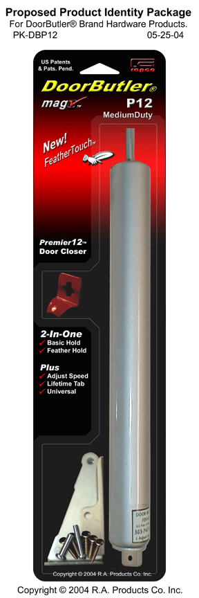 US Pats & Pats Pend.: US.D395,995; US.D425,776; US.D425,399; US.5,829,098; US.5,953,789; US.6,032,331; US.6,397,431; US.6,640,387 . Door Butler®, Door Genie™, The Red Thing™, The Jimmy Clip™, Charlie™, MagChek™, Premier™, Ultra™, Century™, Touch-O-Feather™, The Bead Goes On™, and the reddish colored hold-open tab are trademarks of R.A. Products Co. Inc. Copyright © 1996-2004 RAPCO™ & Ricardo Alonso. Website by RAPCO. |