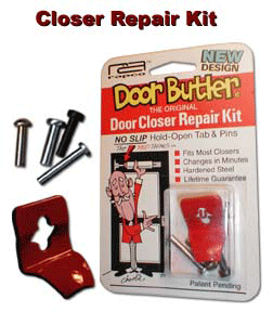 "The Red Thing™, a hold-open tab for screen door closers.